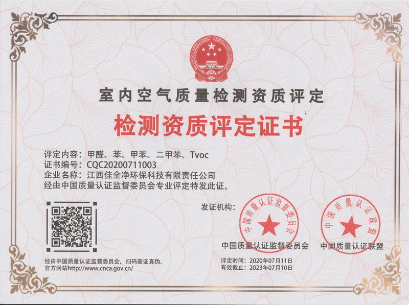 評定內容:甲醛、苯、甲苯、二甲苯、Tvoc